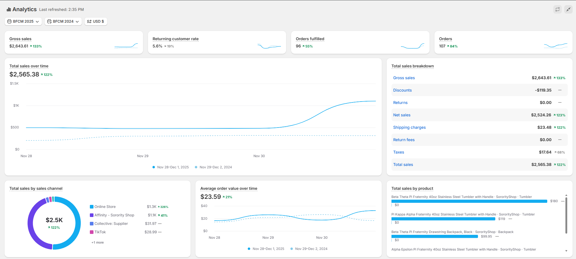 Sorority Shop Website - After (current layout as of 2026)